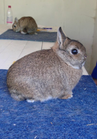 Kaninen skall nu sitta i sitt burfack tills efter prisutdelningen. Är det en utställning som pågår under två dagar skall kaninen vara på utställningen under natten.